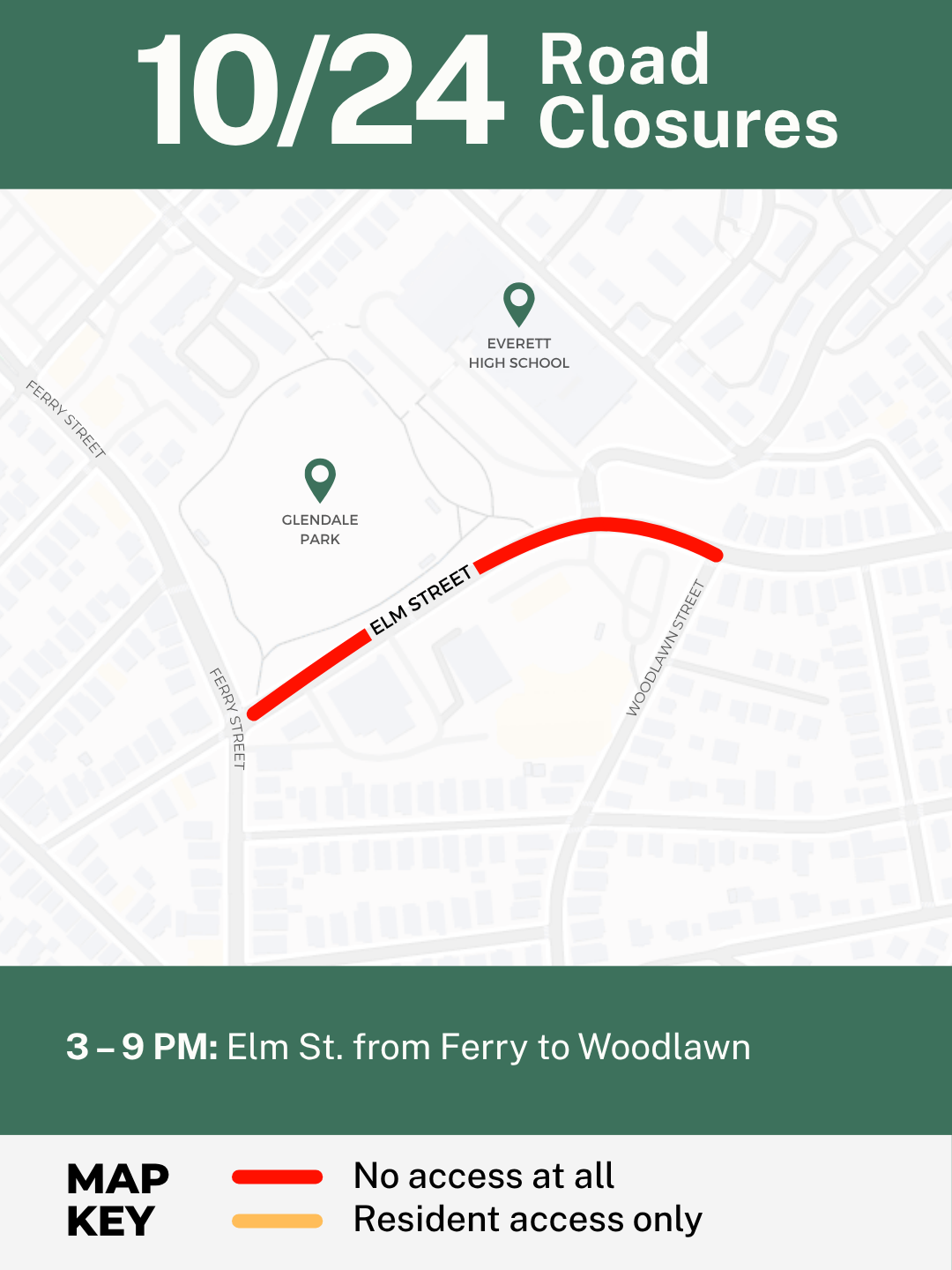 3:00–9:00 PM — Elm Street (Ferry to Woodlawn)