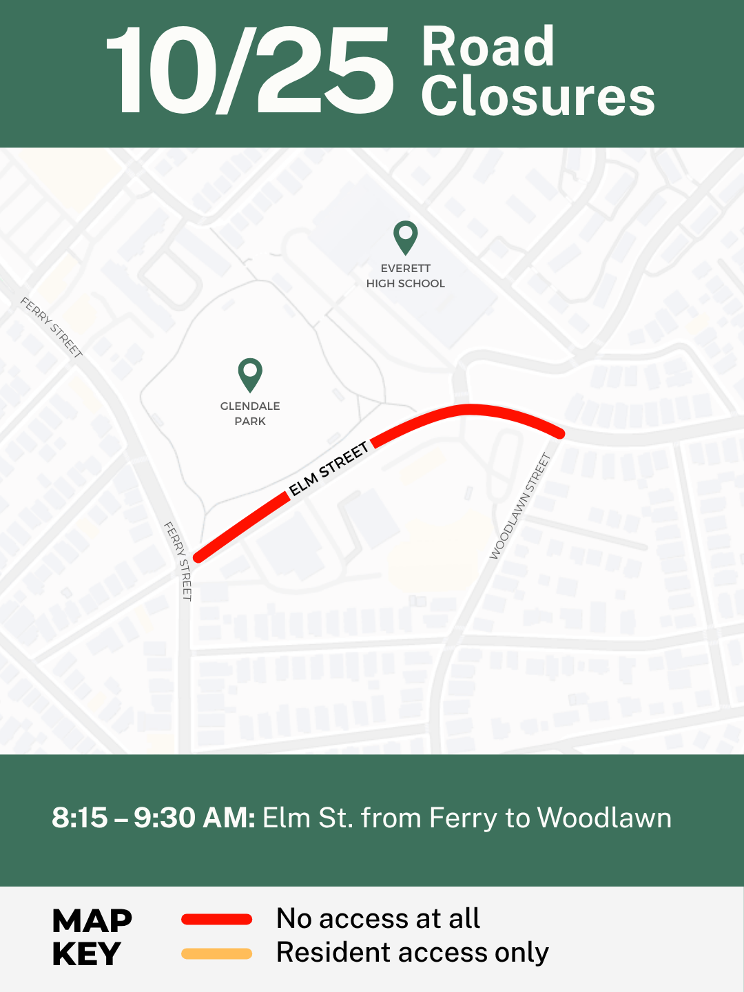 8:15–9:30 AM — Elm Street (Ferry to Woodlawn)