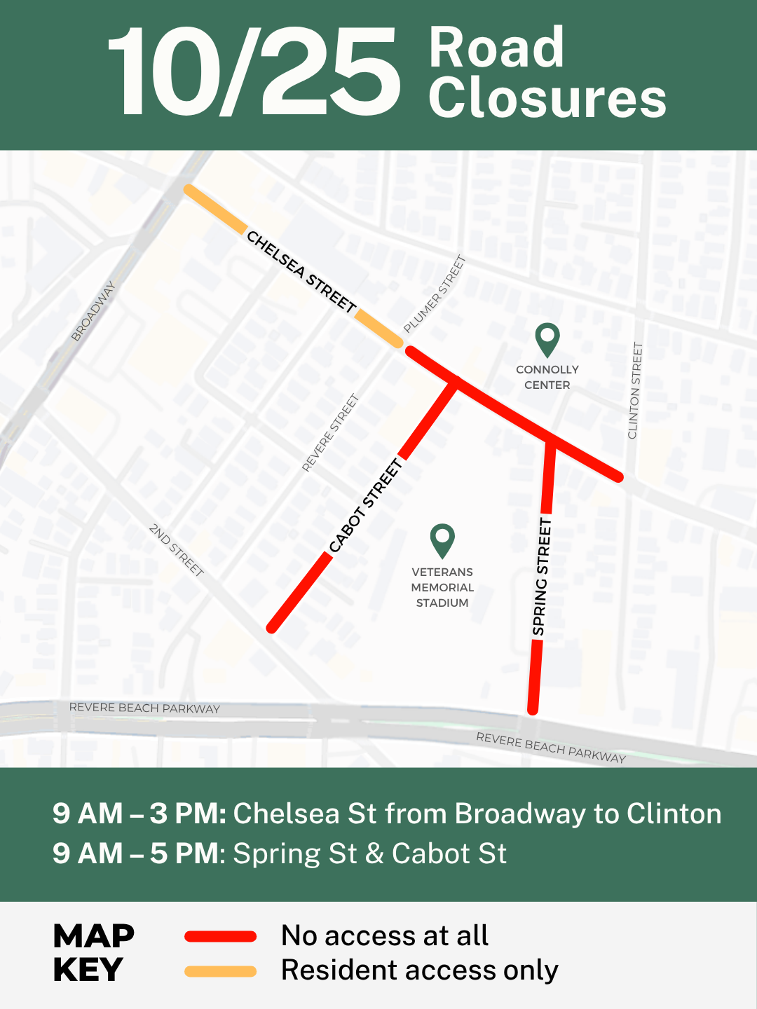 • Local access only from Broadway to Revere/Plumer