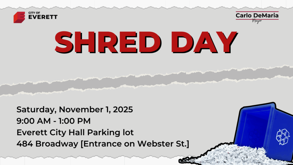 ![]() Mayor Carlo DeMaria invites all residents to join the City of Everett for Shred Day! This free event is a safe and easy way to... |