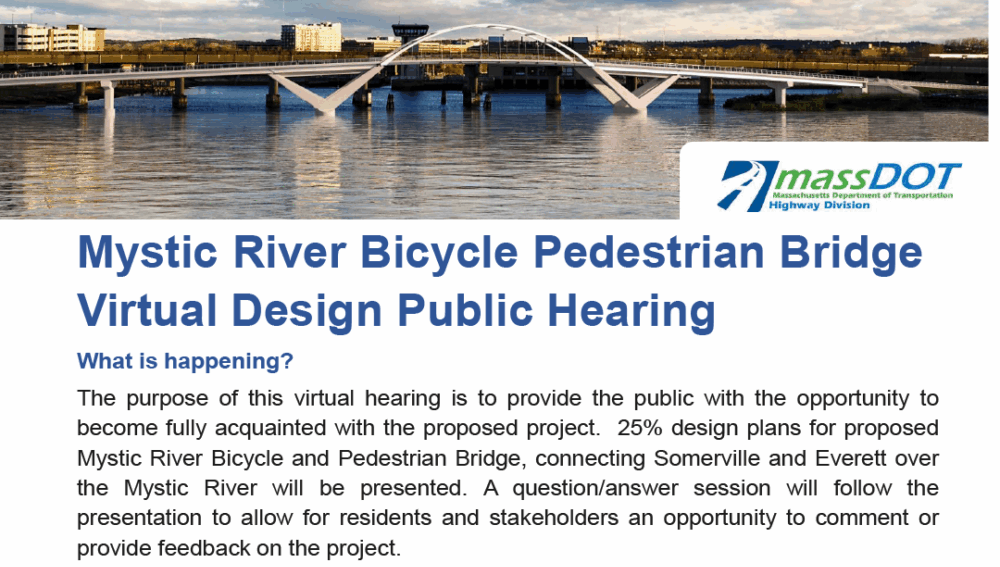 ![]() Looking to keep your blood pressure in check? Stop by the Connolly Center every Tuesday! A nurse from the Health Department will be there to... ![]() Get into the Halloween spirit! Join us for a fun and creative afternoon as you design and create your very own Halloween mask! All materials... ![]() CLICK HERE TO REGISTER MassDOT invites residents to a virtual public hearing to learn about the proposed Mystic River Bicycle and Pedestrian Bridge, which will... |
